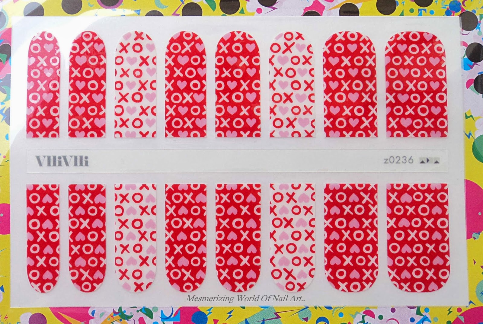 This nail wrap is in Red and White color with xoxo(Hugs and kisses sign) in it.You can also see hearts between xoxo.This is beautiful and i think everyone wants reds and pinks on their nails.